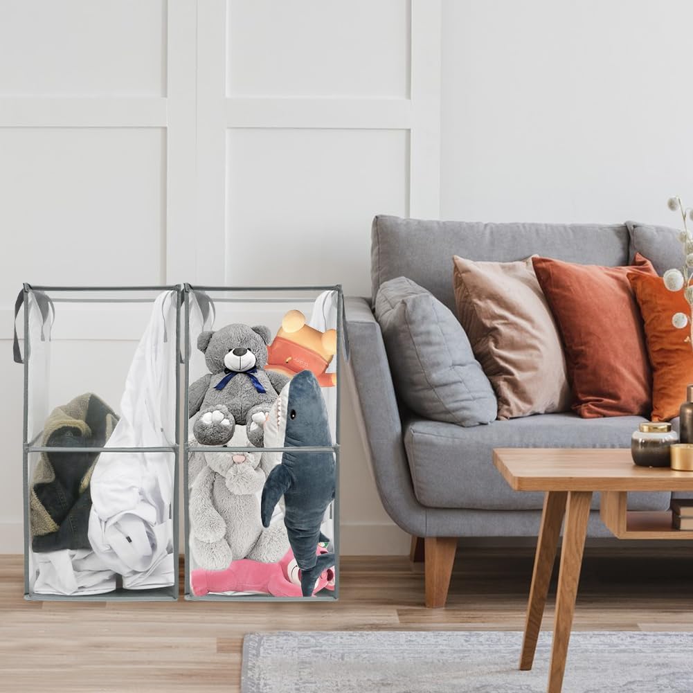 2 cubos organizadores portátiles de almacenamiento de lavandería, plegables y en buena forma, buenos para almacenar ropa, juguetes, ropa, alimentos, etc. en el baño, lavandería o sala de estar, gris,
